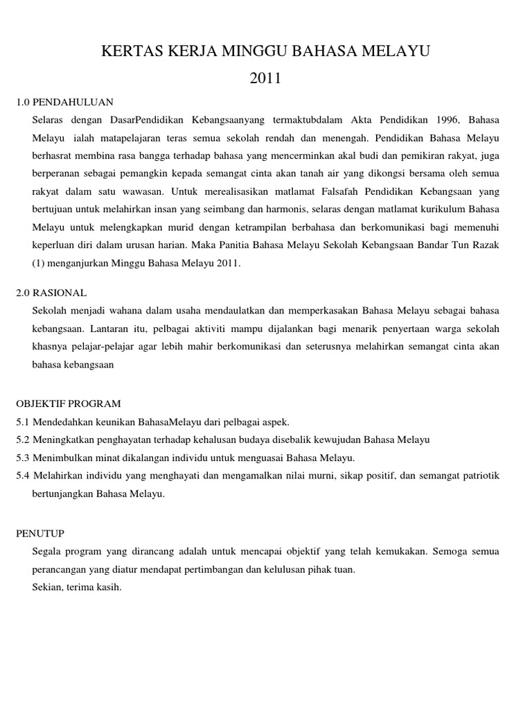 Kertas Kerja Program Minggu Bahasa Melayu Dengan Pss 2018 Pdf